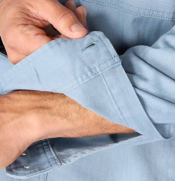 -Regulowane mankiety zapinane na dwa guziki z przedłużonymi plisami