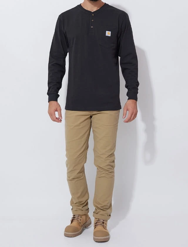 Koszulka z długim rękawem Carhartt Heavyweight Pocket Henley jest wykonana z tej samej wysokiej jakości tkaniny co najpopularniejsza koszulka Carhartt K87. Świetnie sprawdza się jako warstwa wierzchnia podczas chłodniejszych poranków. Luźny krój zapewnia pełen komfort przez cały dzień.