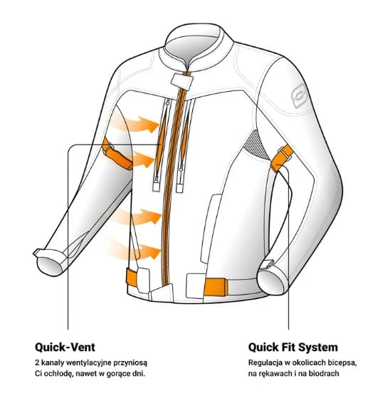 Męska kurtka motocyklowa Delta IV to idealne rozwiązanie na różne warunki pogodowe. Wypinana membrana chroni przed wiatrem i deszczem, podpinka sprawdza się w chłodniejsze dni. Na barkach i łokciach znajdują się protektory. Kurtka jest regulowana w biodrach i rękawach.