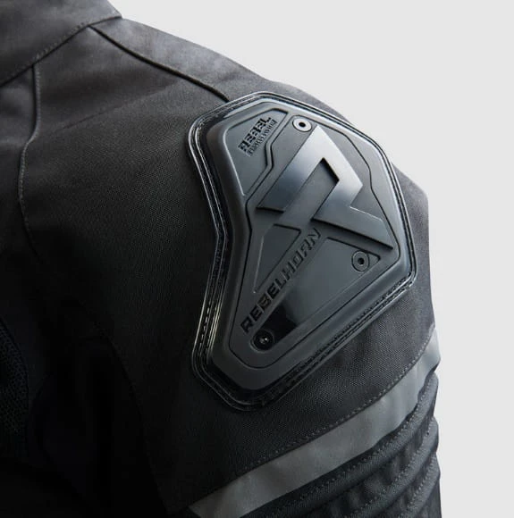 Kurtka Rebelhorn Vandal Mesh zapewnia wysoki poziom bezpieczeństwa dzięki zastosowaniu ochraniaczy: