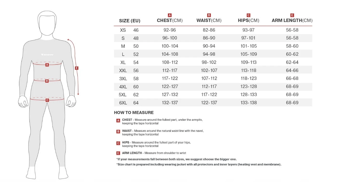 - Dla podwyższenia bezpieczeństwa kurtka wyposażona jest w ochraniacz pleców CE poziom 2 o tej samej technologii i strukturze co łokcie i ramiona.