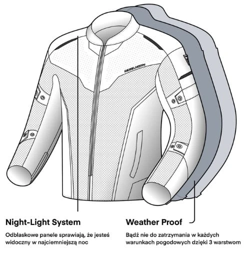 zamki łączące typu 8VST (360° oraz krótki), dzięki którym połączysz kurtkę z dowolnymi spodniami marki Rebelhorn