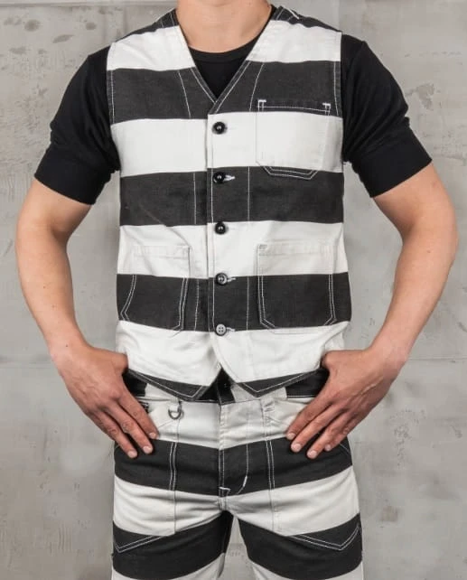 Tkanina Alcatraz to drukowane płótno, takie jak to, z którego wykonano Prison Stripes. Prison Stripes pojawiły się około 1850 roku i zostały zaprojektowane w celu szybkiej identyfikacji więźniów, którzy byli na wolności.