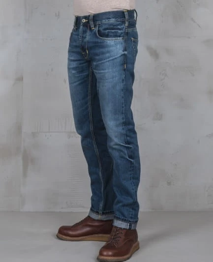 Spodnie są wstępnie prane i nie kurczą się. Wygląd i styl spodni został wzorowany na parze spodni, które były faktycznie noszone a włoski, tradycyjny tkacz Candiani specjalnie utkał denim, w którym przetarcia są szczególnie autentyczne.