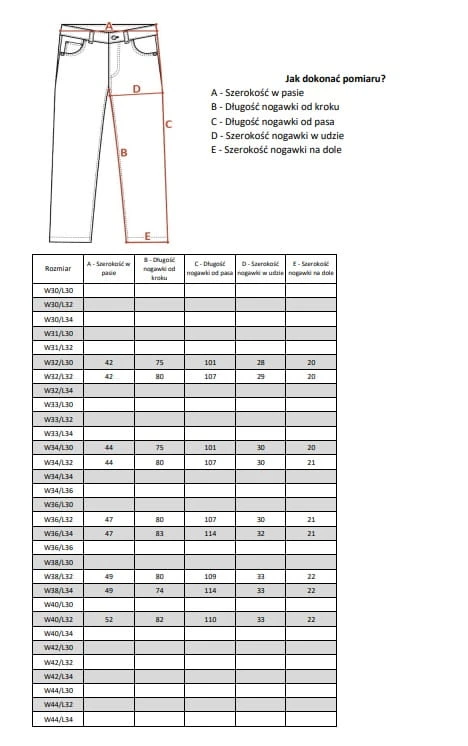 - Nogawka: prosta