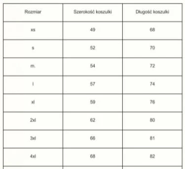 TABELA ROZMIARÓW